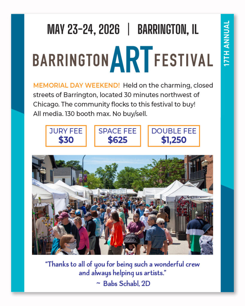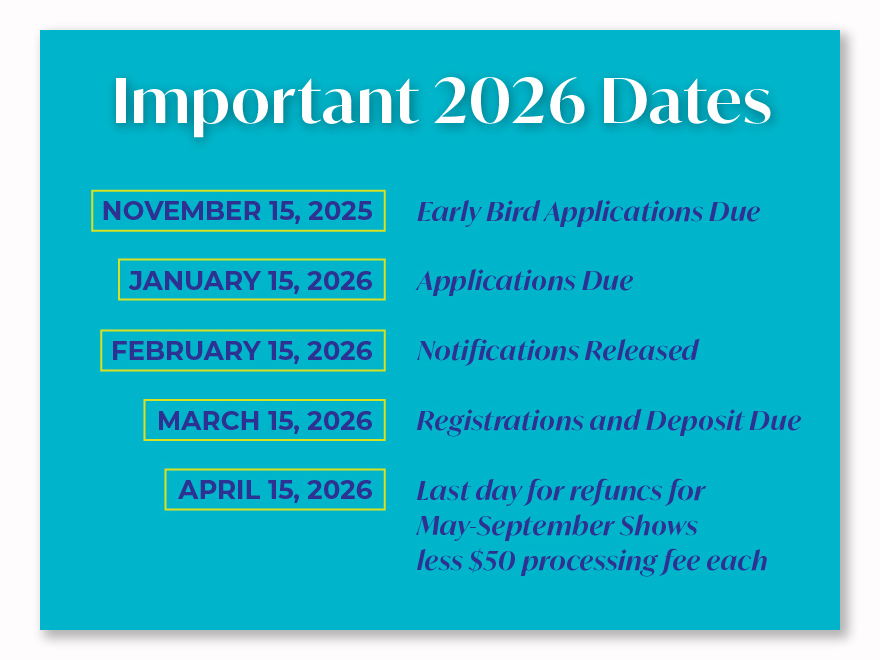 The 2026 season is shaping up to be our boldest ever! Be part of the creative buzz with 27 unique events, 3,000 talented & savvy artists, and 650,000 art loving visitors ready to shop, connect, and celebrate the arts! Pair that with dedicated, proven marketing, our seasoned on-the-ground team, and supportive artist communities — and you’ve got an unmatched network of creativity and opportunity! Take advantage of the APP PASS, which offers big savings while streamlining applications to all our festivals. Payment plans, on-site assistance and our free, info packed Art Smart Bootcamp sales seminar all come together to set you up for success in 2026!